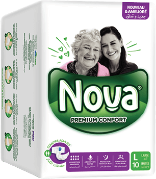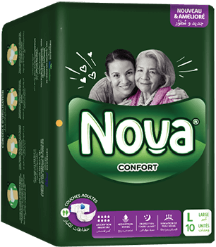 Nova is the first brand of diapers for adults, offering softness, absorbency, and symbolizing the strong bond between generations, with one watchword: hygiene, softness and dignity.