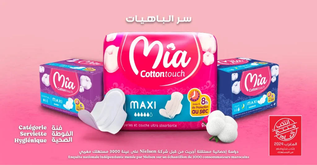 MIA, Riaya’s flagship brand for feminine hygiene, has earned the title of Best Sanitary Napkin in Morocco for 2025. Known for its comfort, superior protection, and attention to women’s needs, MIA continues to raise the standard for feminine care products made in Morocco. The Product of the Year award reaffirms its reputation as a trusted choice for women seeking high-quality and affordable hygiene solutions.